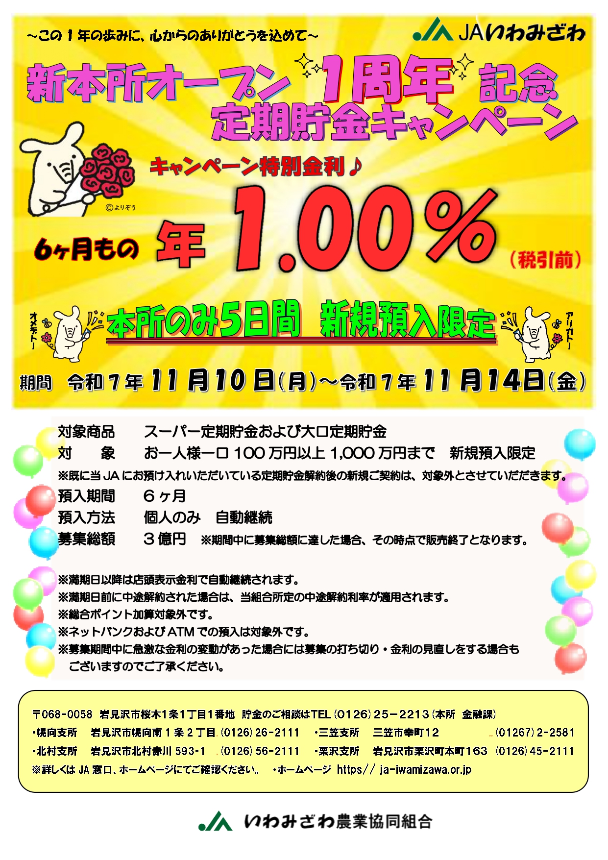 お住まいの近くの金融店舗にご本人様のご来店をお願い致します。 インターネット申込みいただけるお客様は、当組合(JAいわみざわ)管内にお住まいの方、または勤務されている方に限らせていただきます。インターネット申込みをご利用していただくにあたり、以下の「個人情報の取扱に関する同意条項」の内容を確認の上、同意が必要となります。